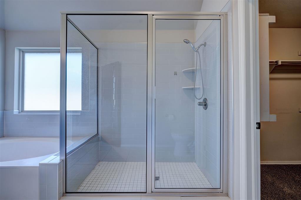 Don’t miss the details like rounded drywall corners, storm doors, a wood-burning/gas fireplace combo, exterior gas valve, sprinkler system, a nice outbuilding with a loft area, and an ABOVE GROUND STORM SHELTER/safe room. The office, located at the front of the home, offers privacy away from the bedrooms and has beautiful wood-look tile, this tile is also in the entry way. All bedrooms feature large closets and ceiling fans. The primary bedroom boasts a MASSIVE SHOWER, separate garden tub, and a full walk-in closet.